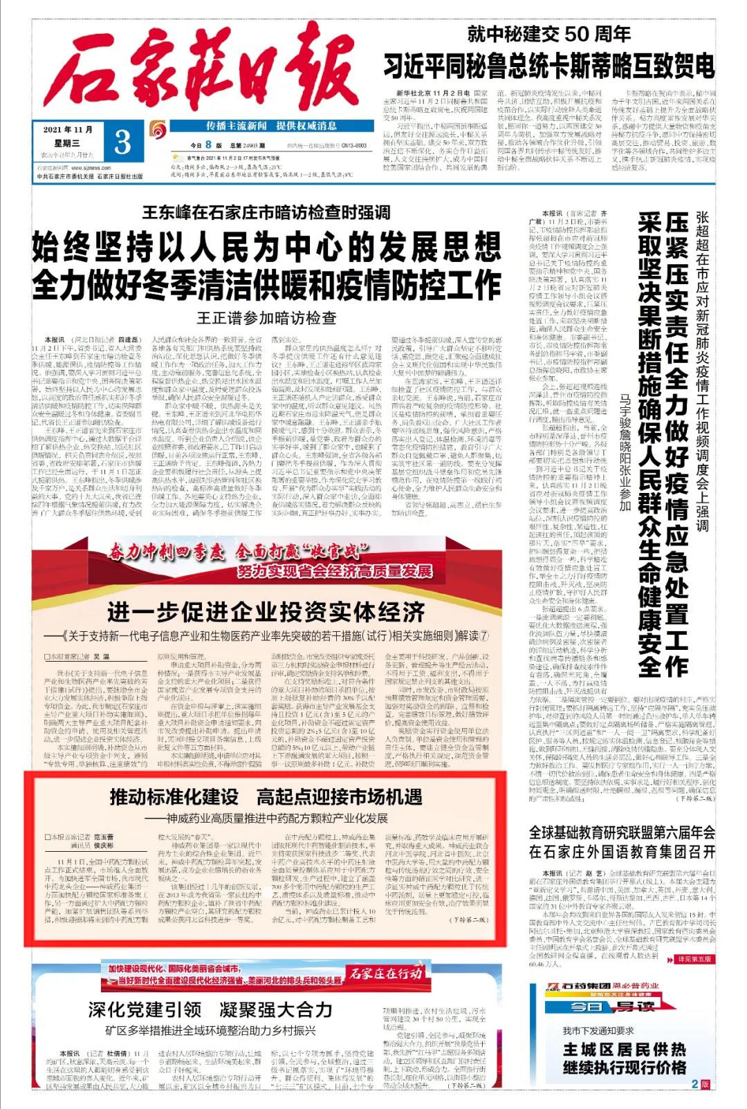 石家庄日报:推动标准化建设 高起点迎接市场机遇——太阳成集团tyc234cc高质量推进中药配方颗粒产业化发展