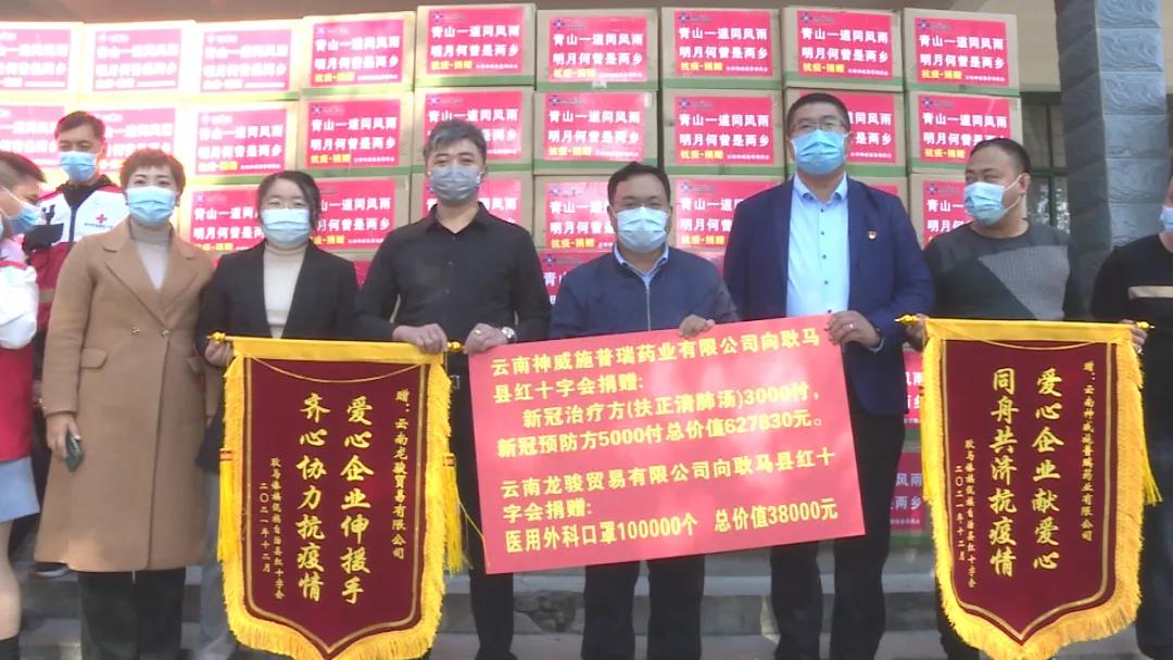 “‘青山一道同风雨,明月何曾是两乡’。这句饱含患难真情、大爱无疆的诗词,被一一写在了一批总价值62.7万元的疫情防控物资纸箱上。”这是2021年12月30日,在云南省临沧市耿马傣族佤族自治县孟定镇,云南太阳集团施普瑞药业有限公司举办的捐赠仪式现场看到的场景。