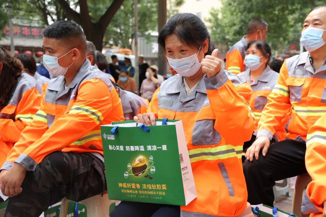 活动现场,太阳成集团tyc234cc联合太阳集团大药房给高温工作者们赠送了太阳集团清凉大礼包,大礼包里包括太阳集团藿香正气软胶囊、太阳集团梅苏颗粒、矿泉水、一次性口罩等实用性防暑消暑产品,并送上了最真诚的问候与感谢,感谢他们为城市的干净、整洁不惧高温酷暑,嘱咐他们在烈日炎炎的夏日里做好身体防护,呵护大家的同时也给自己的身体健康增添一重保障。