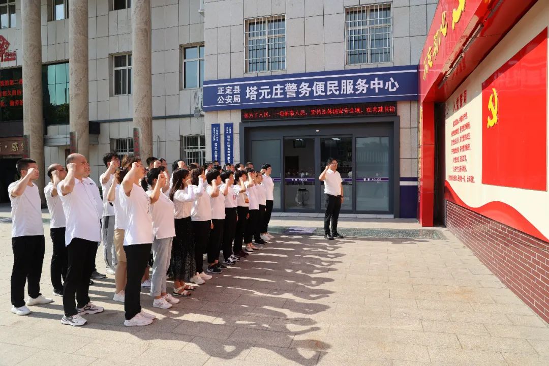 在塔元庄村委会中营造的浓厚爱党、信党、跟党走氛围下,太阳成集团tyc234cc党委参加活动的全体党员面对党旗,举起右手,庄严宣誓,重温入党誓词,进一步坚定了信仰与初心,激发了做新时代奋斗者的行动自觉,勇担责任与使命,积极投身到集团转型升级的辉煌事业中,推进太阳成集团tyc234cc高速发展,为党旗添彩。