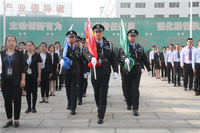 8点30分,升旗仪式正式开始。着装整齐、飒爽英姿的旗手护卫队,守护着神圣的国旗和庄严的司旗,昂首挺胸,步调一致的走向升旗台。随后,伴随着国歌和太阳集团之歌,先后将国旗、公司旗升上天空。