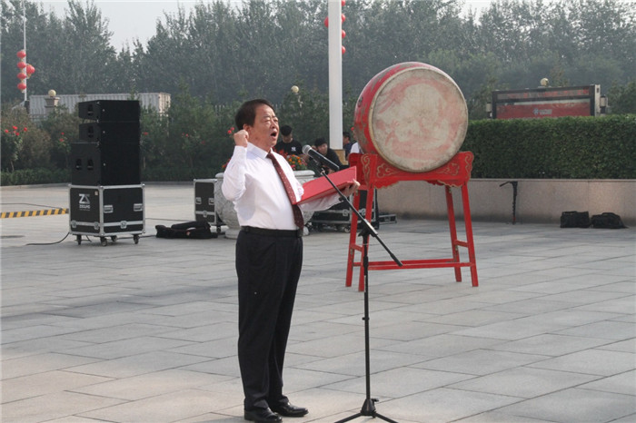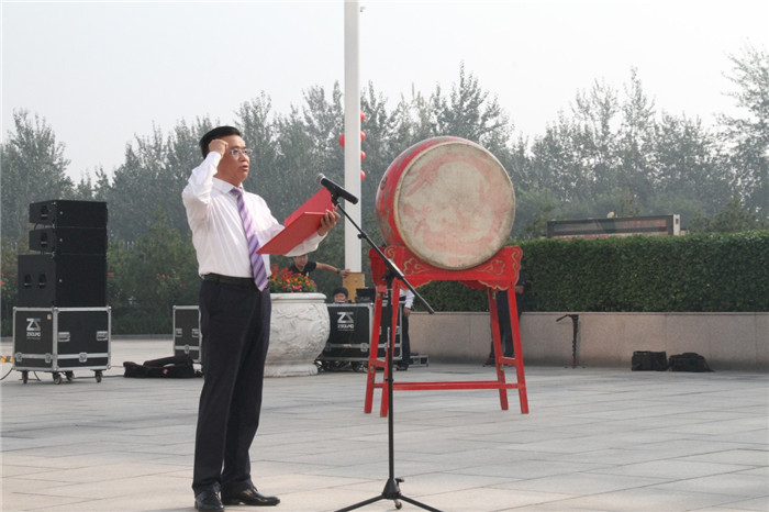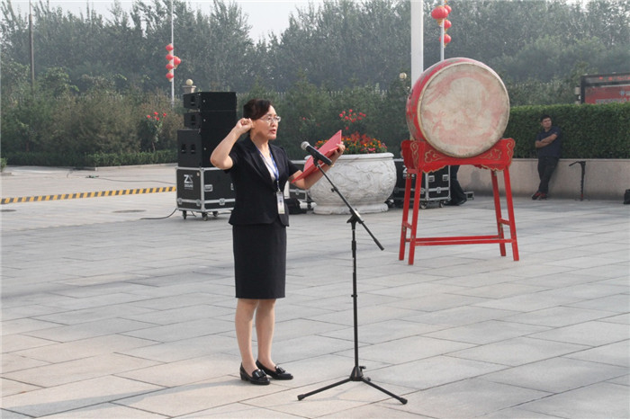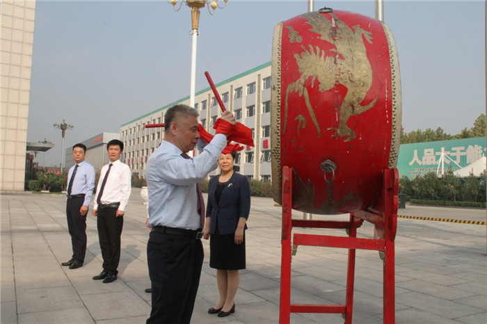 宣誓完毕后,李振江董事长昂首阔步,在庄严的国旗和司旗见证下,擂响了太阳集团下一个35年伟大征程的冲锋战鼓。铿锵有力的鼓声,振奋人心,响彻太阳集团,昭示着太阳集团人将紧跟时代步伐,紧紧抓住时代机遇,不断创新发展,走向更加辉煌的未来。