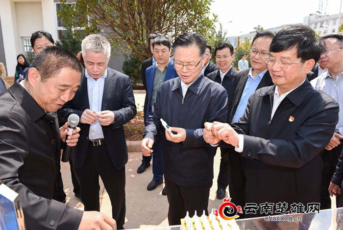 云南省政府副秘书长陈明、云南省楚雄州委书记杨斌,云南省楚雄州委副书记、州长迟中华,云南省楚雄州委常委、常务副州长赵克义,云南省楚雄州委常委、州委秘书长赵晓明等参加调研。
