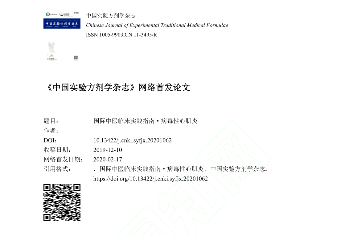 该指南由世界中医药学会联合会组织审查、审批和发布,是在《中医内科常见病诊疗指南(西医疾病部分)病毒性心肌炎》基础上,并在相关法律法规和技术指导文件的框架下,结合近年来相关的国内外临床研究证据,进行证据分级和意见推荐,经专家共识研制而成。