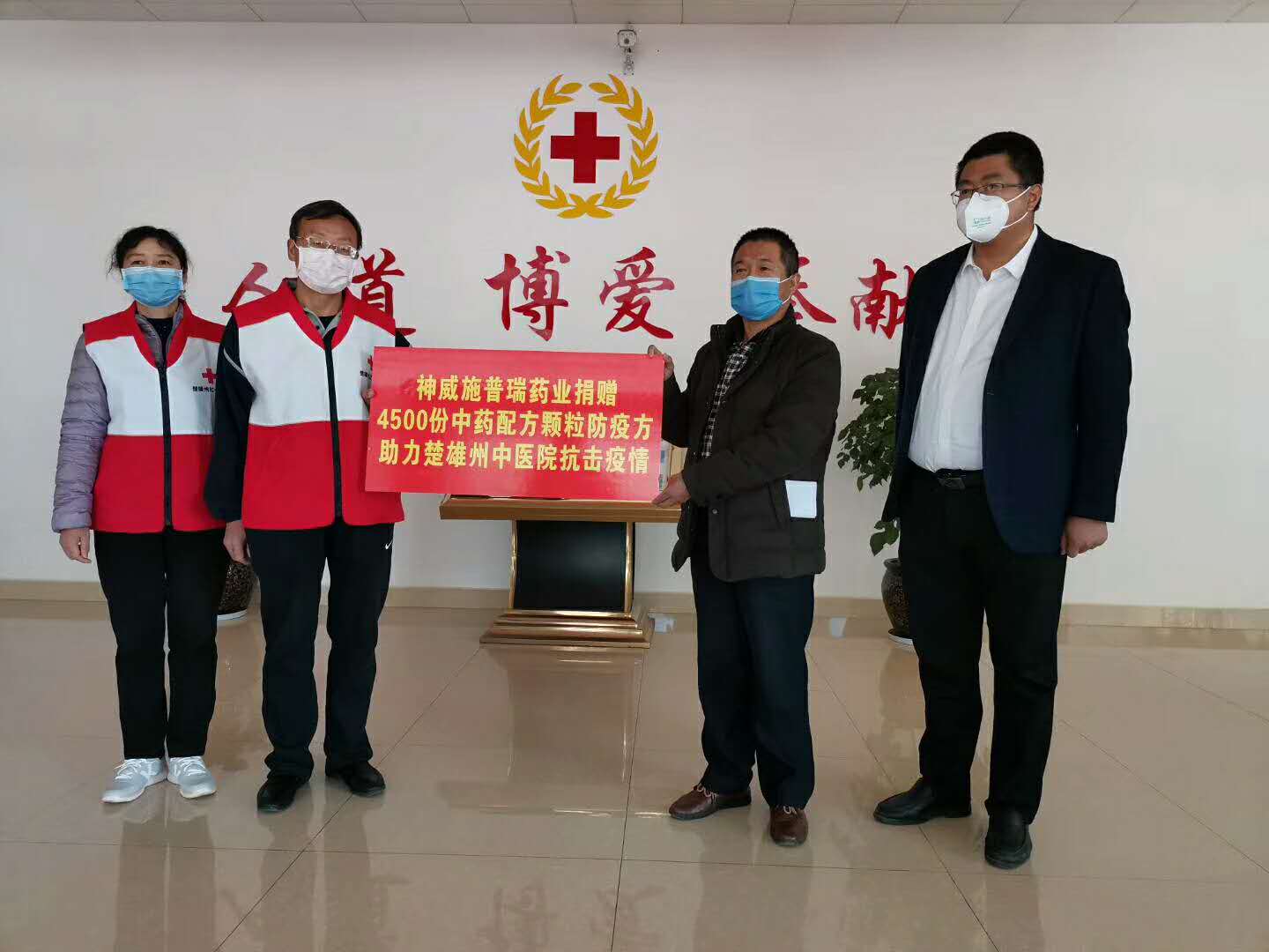 2020-02-072月6日上午,云南太阳集团施普瑞药业有限公司向楚雄州中医医院捐赠4500份疫情防治用中药配方颗粒,解决防疫战线防控药品紧缺问题,为一线医护人员保驾护航。